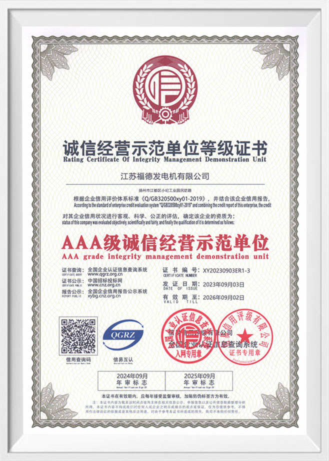 | Vrijeme oporavka frekvencije ≤ 3S | Vrijeme oporavka napona ≤1S (napon ±3%) |